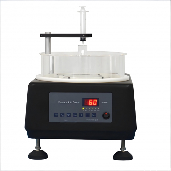 The Lith-KJ8 Vacuum Spin Coater features simple operation, easy cleaning, and a compact design. It is primarily used in laboratories of universities and research institutes for thin-film deposition. The Lith-KJ8 secures samples on the chuck using vacuum adsorption and employs a two-stage speed control program. First, the coater operates within a specified speed range while dispensing the coating material for a set duration. After dispensing, the coater accelerates to the second-stage maximum speed for spin coating, with a predefined coating time. The machine stops automatically once the process is complete. The Lith-KJ8 ensures uniform coating of high-viscosity colloids and solutions on sample surfaces through high-speed rotation.