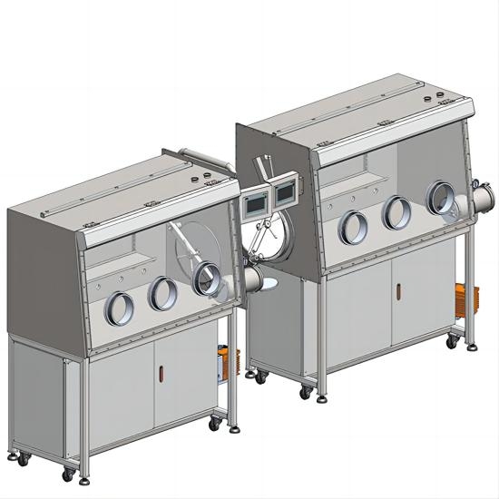 2.1.1. Shape: T-shaped (304 stainless steel), linked glove box two boxes, three door design, easy to operate.