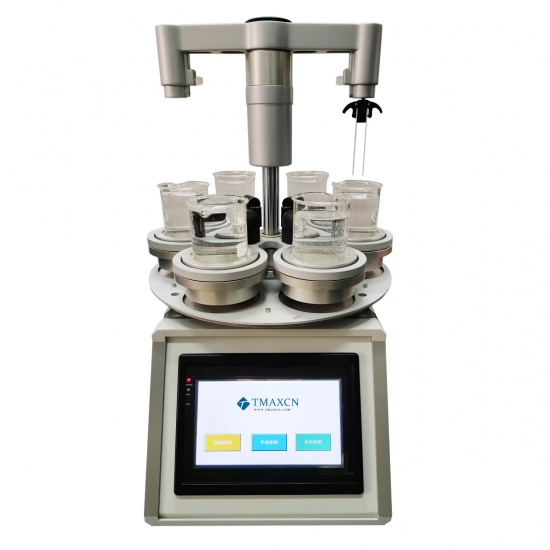 The TMAX-KJ06H six-station dip coater processes one sample at a time through programmable counterclockwise rotation. Samples are immersed in material-loaded beakers for preset durations before being lifted for drying, with both immersion and drying times being fully adjustable.